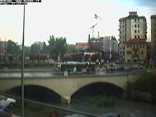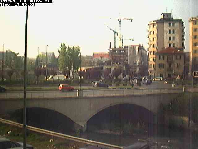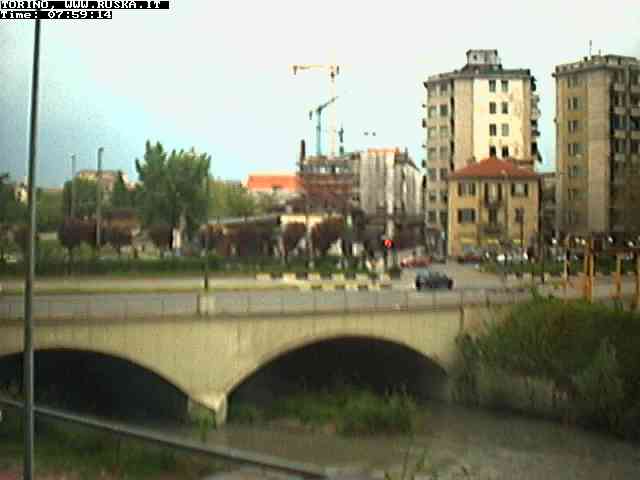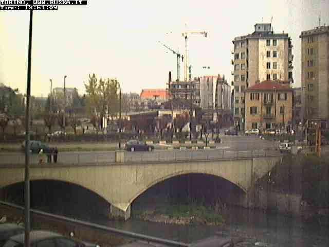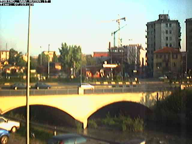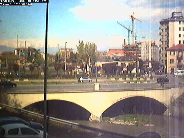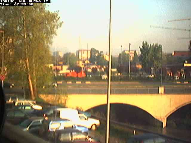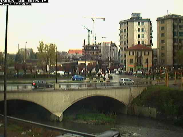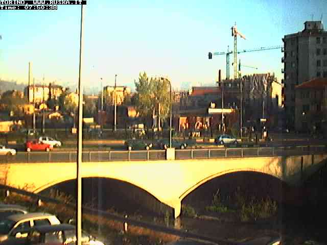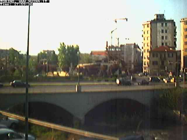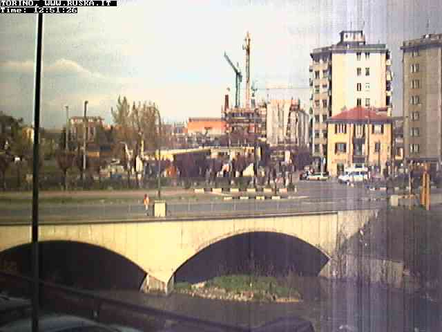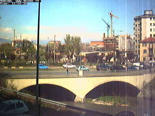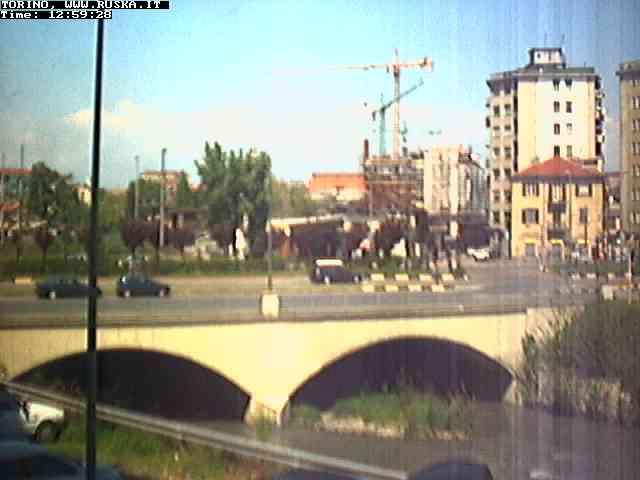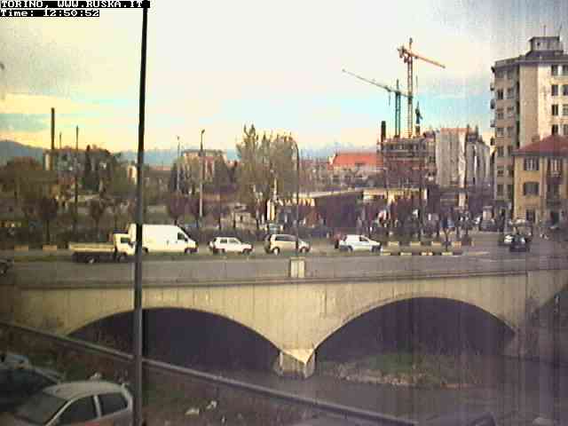 ogni giorno le foto dalla webcam sopra il nostro ufficio: il ponte sul fiume Dora a Torino, via Bellotti Bon, corso Svizzera e in lontananza, quando non c'è foschia: le Alpi