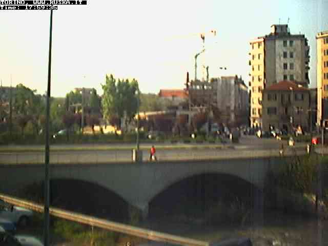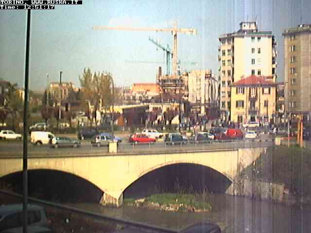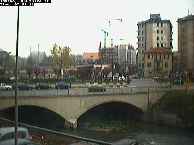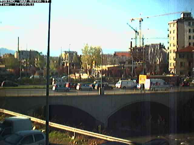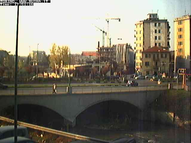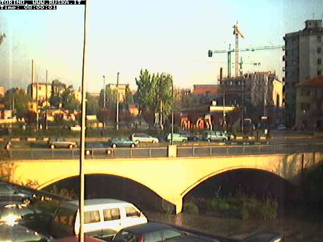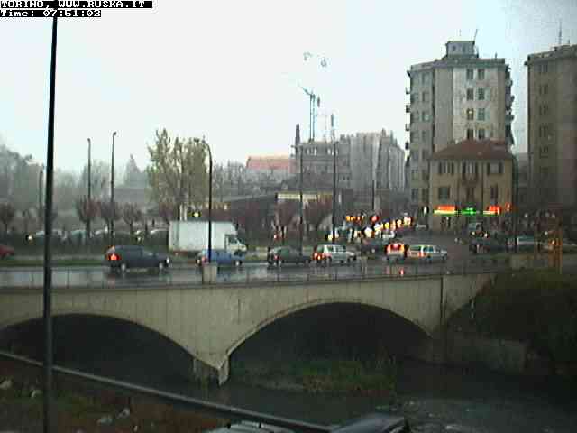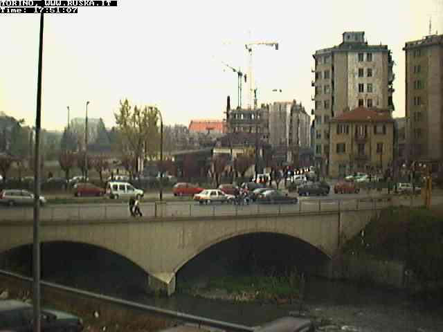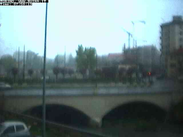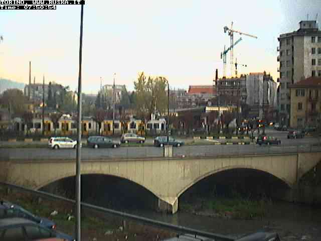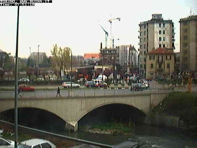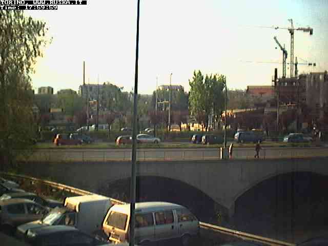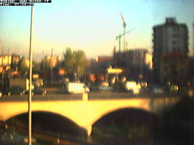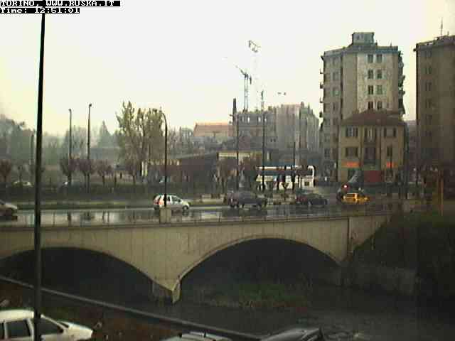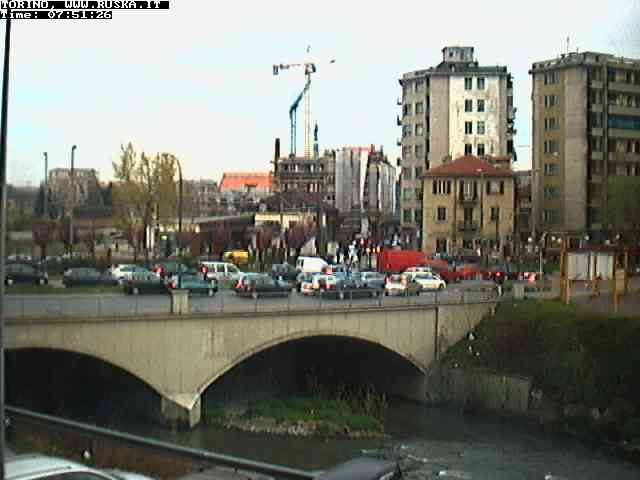 ogni giorno le foto dalla webcam sopra il nostro ufficio: il ponte sul fiume Dora a Torino, via Bellotti Bon, corso Svizzera e in lontananza, quando non c'è foschia: le Alpi