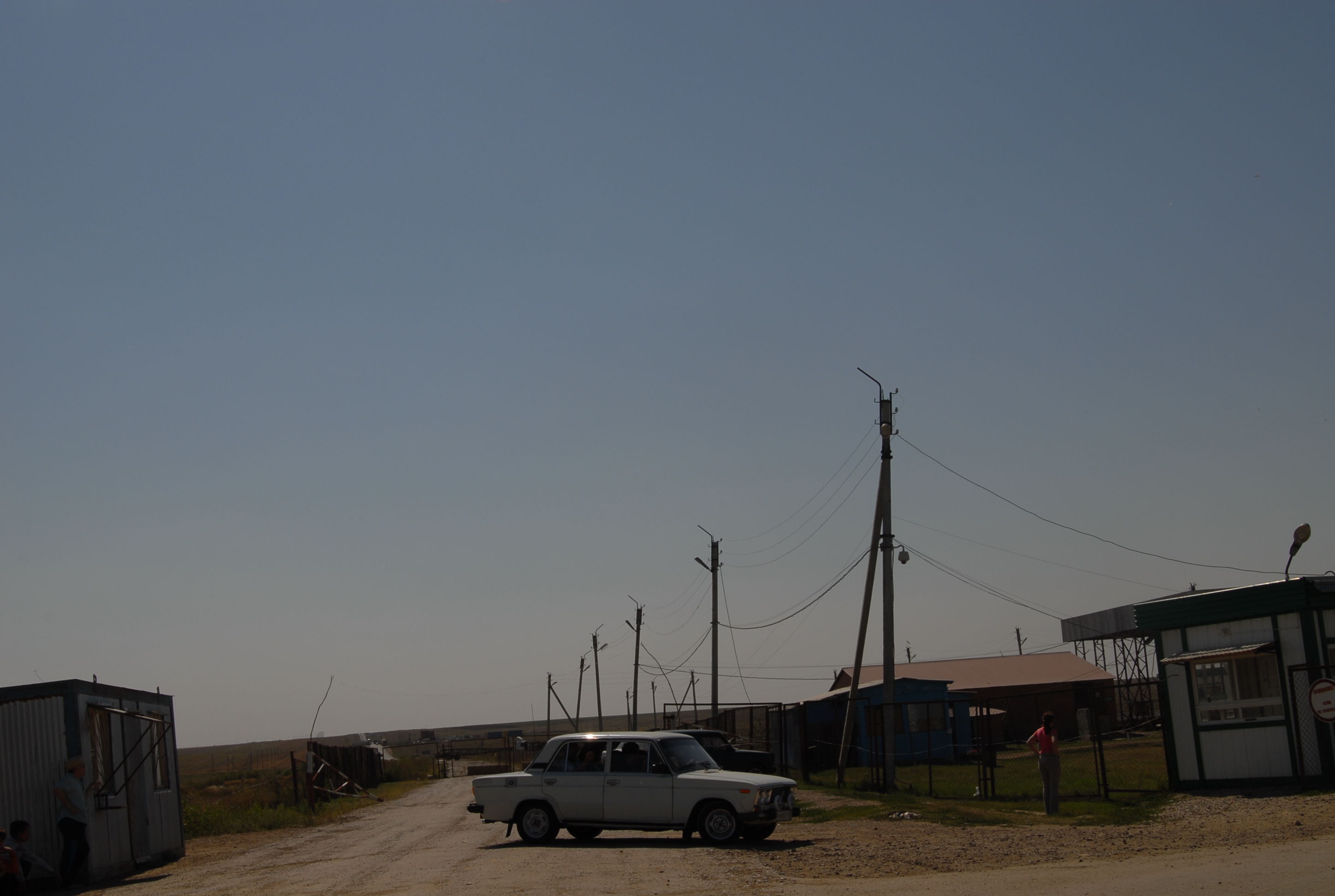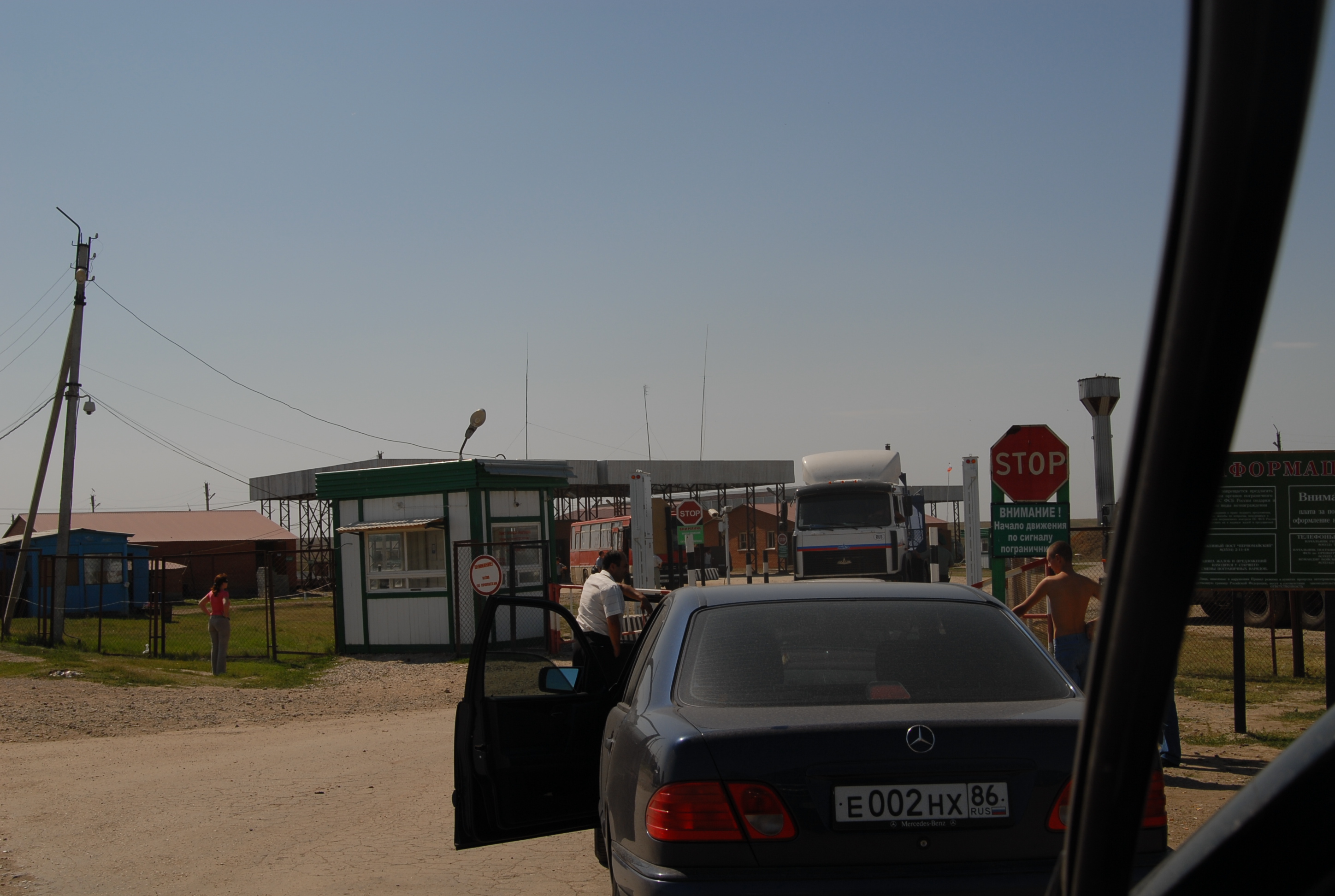 russia. All'ingresso in Kazakistan (nel gabbiotto hanno la telecamera scanner che inserisce a computer la foto) incrociamo un landrover francese. La donna che aspetta ci racconta che erano 12 macchine dirette in