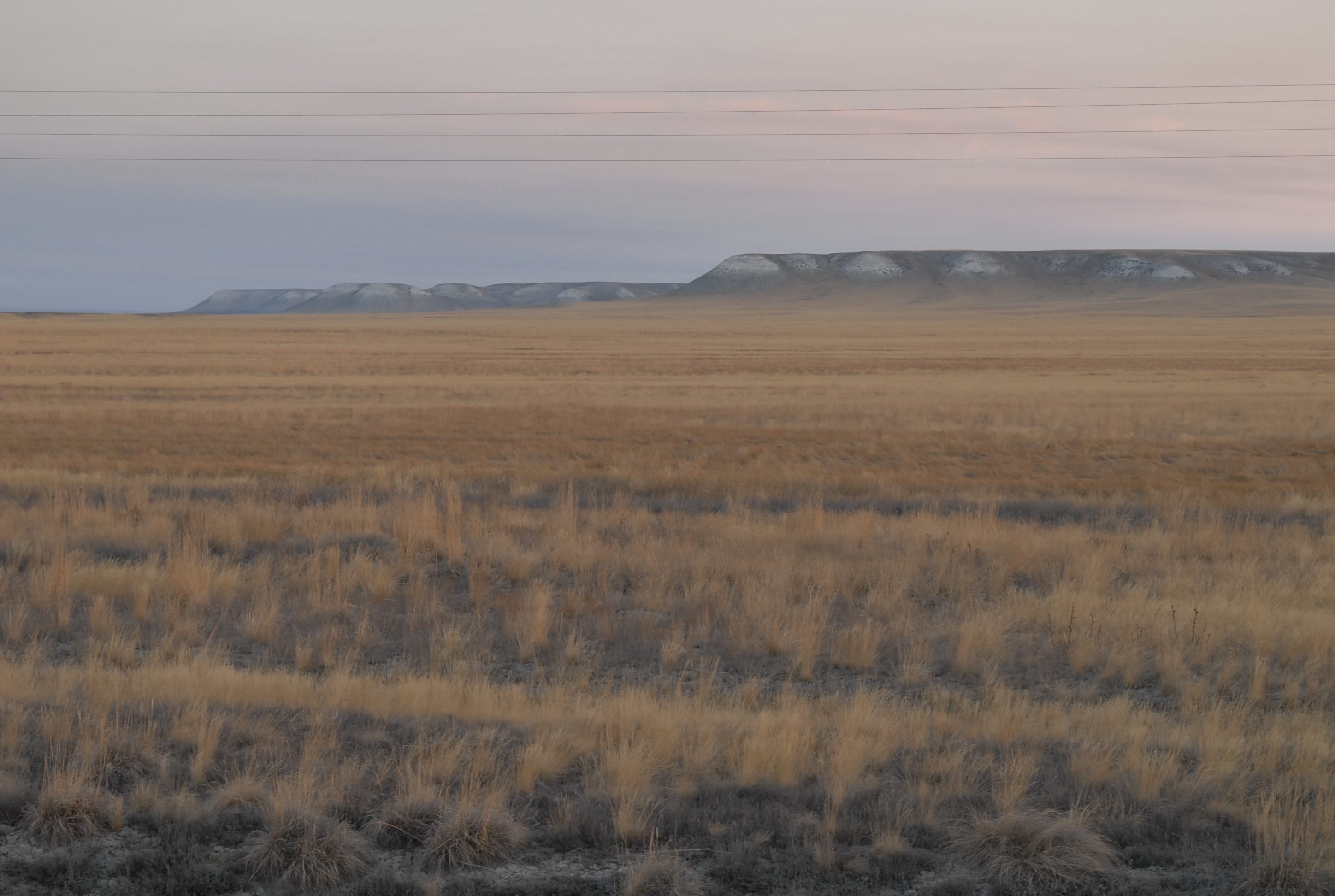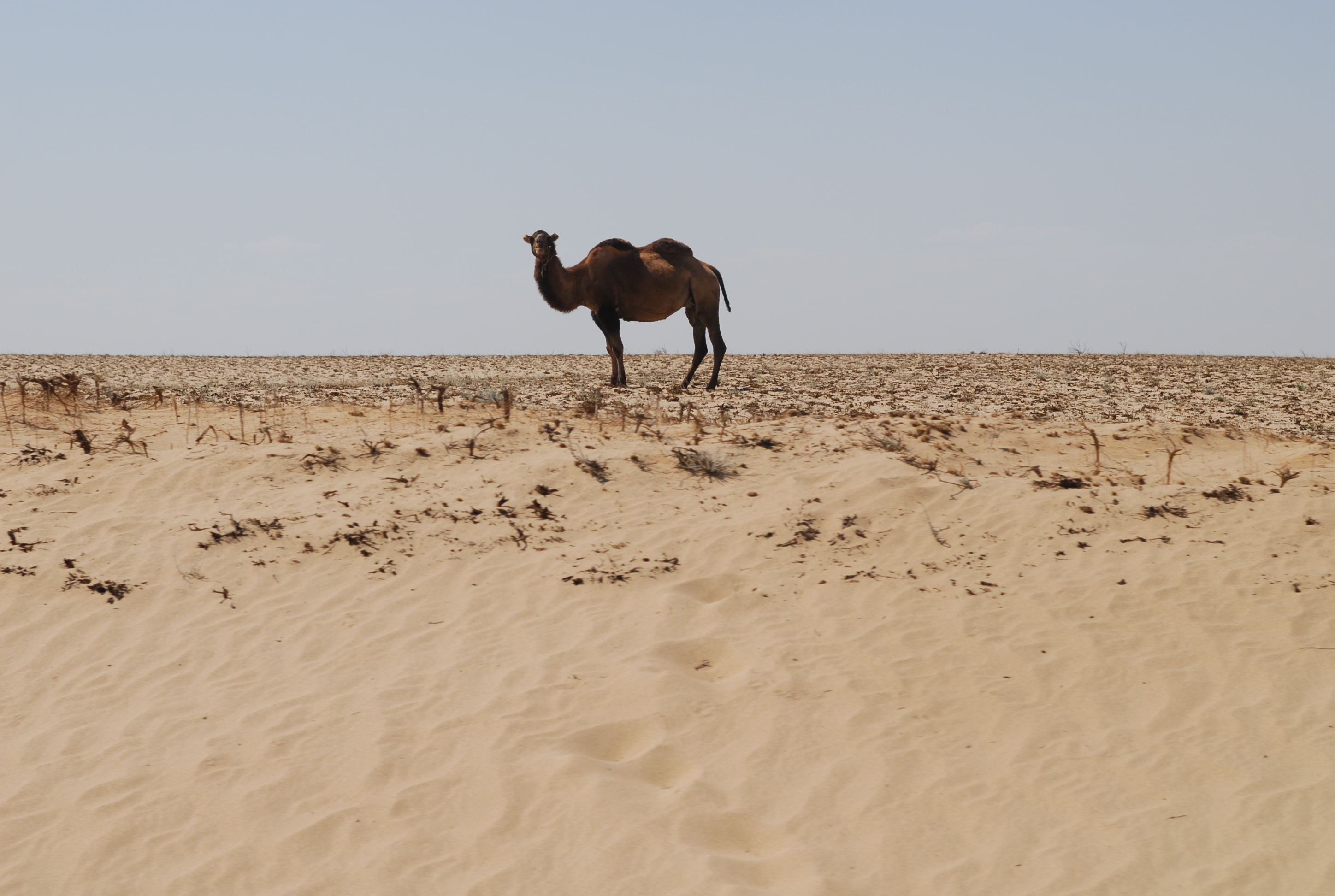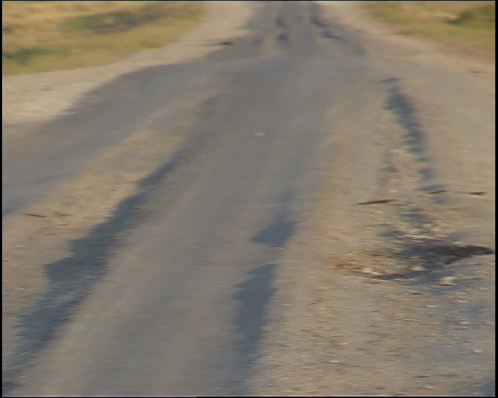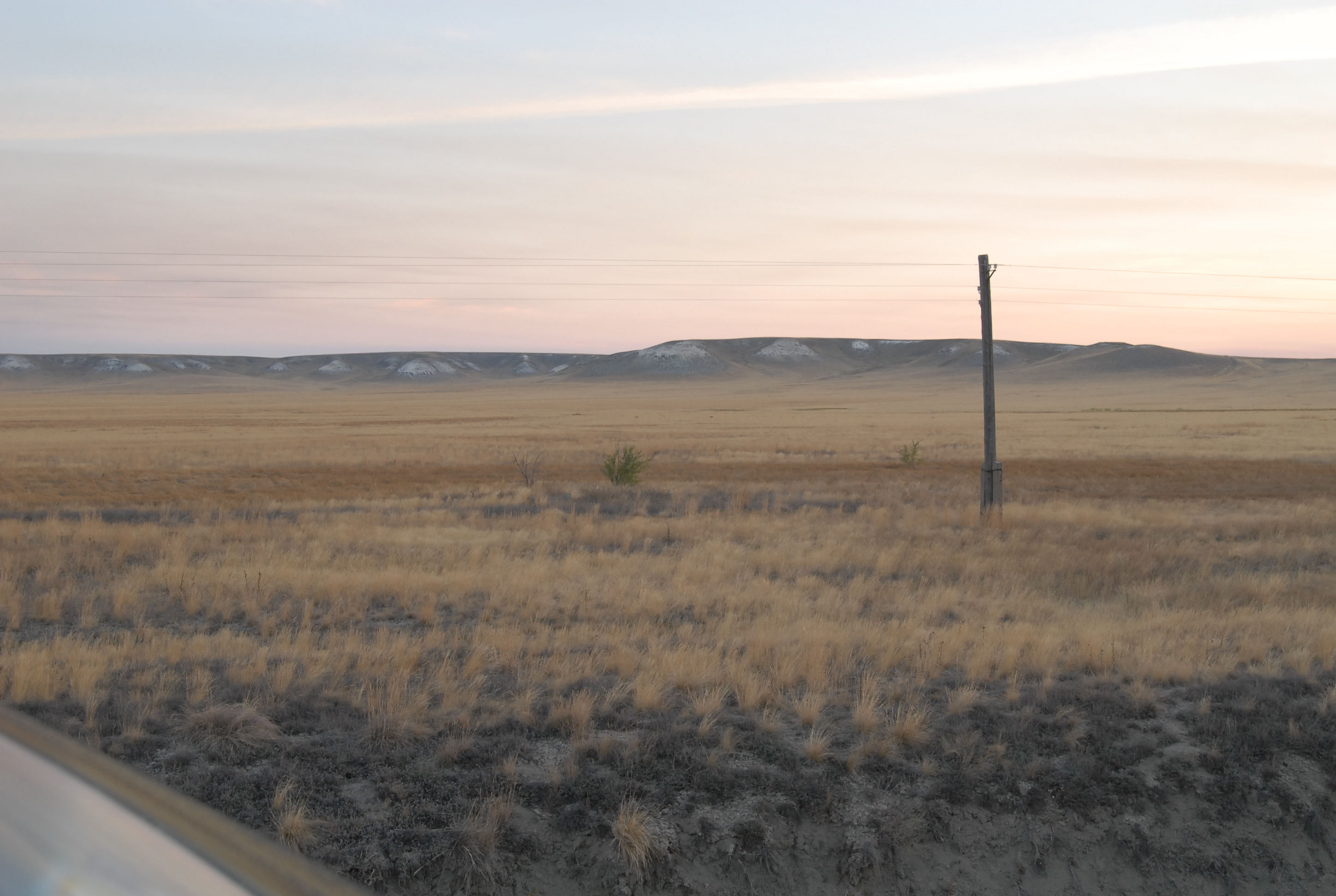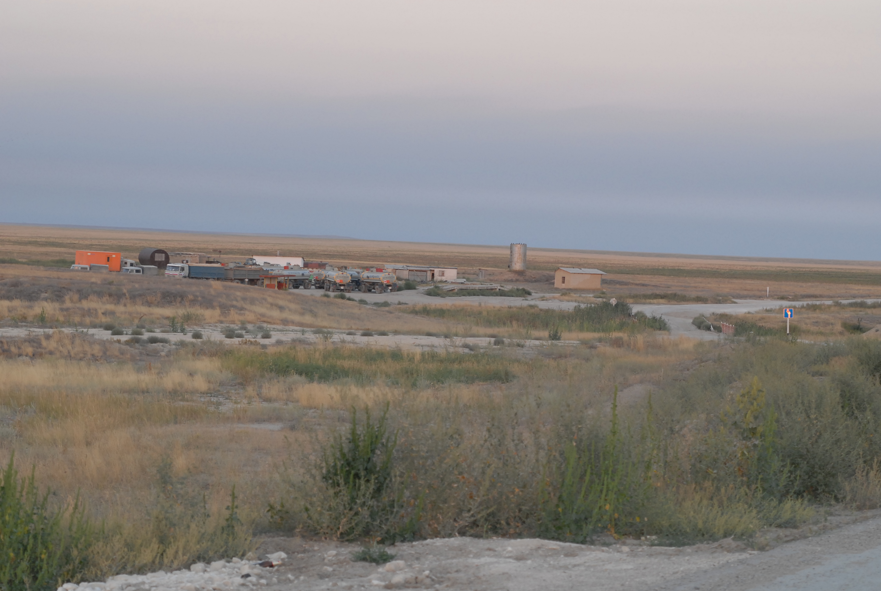 60 kilometri dopo Aktjubinsk ricomincia la solfa: due strade di sabbia con in mezzo una follia in asfalto... ma certo, con la luce, non è