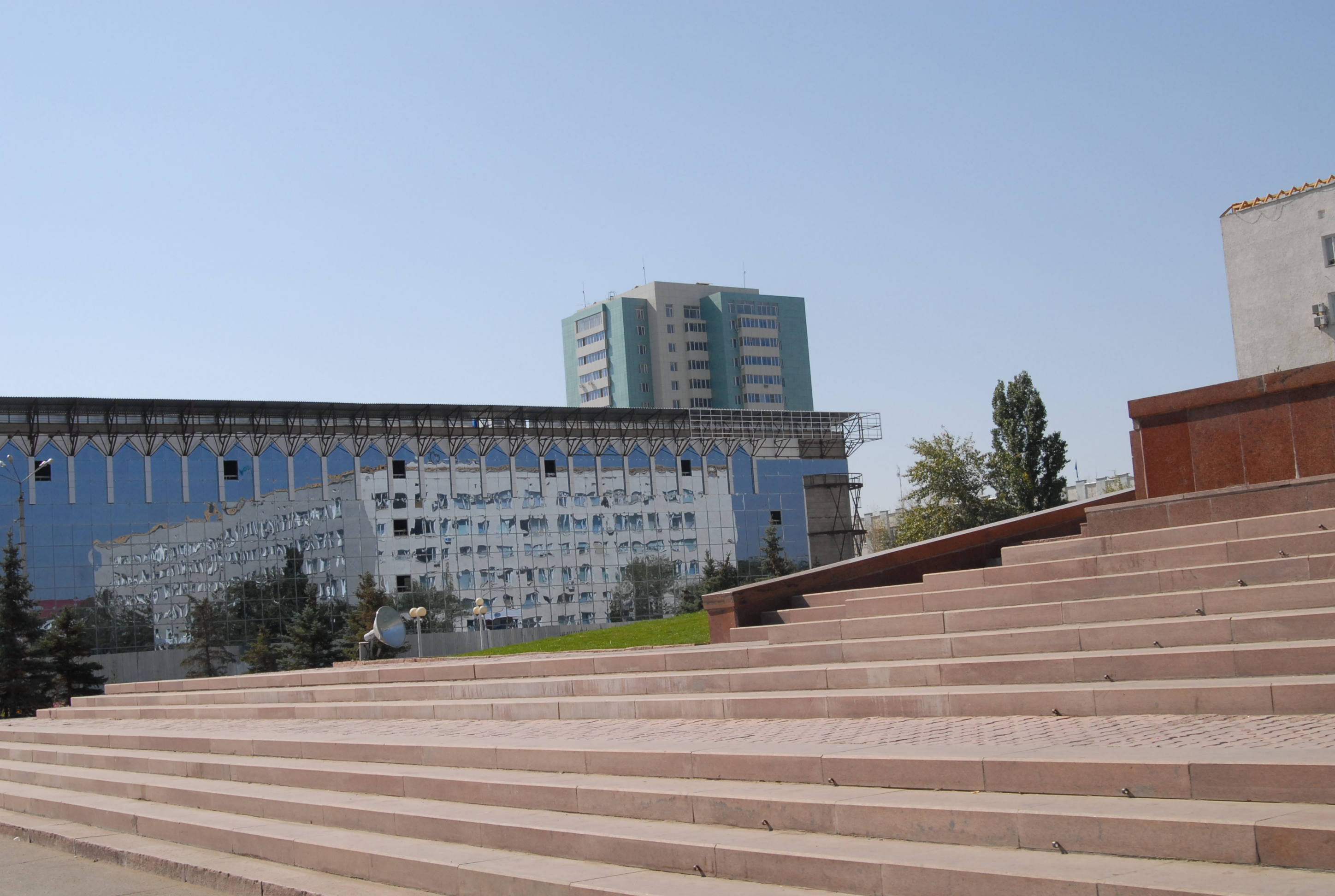 La mattinata passa rapida, la strada migliora e facciamo altri 200 kilometri, arriviamo a mezzogiorno ad Aktjubinsk, salutiamo i veneti e