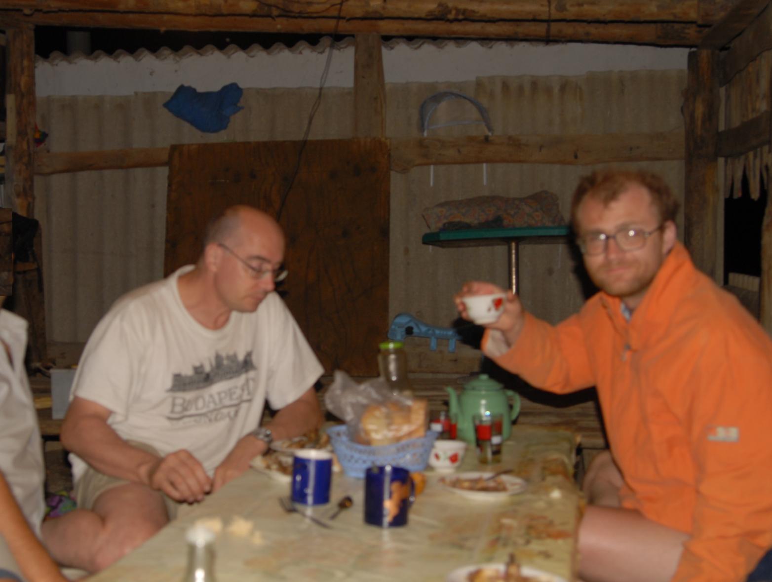 Mangiamo shashlik di capra, che ho talmente fame che ora mi piace, beviamo succo di frutta. Il siciliano non mangia la capra, Brave-heart finisce anche il suo. Poi i