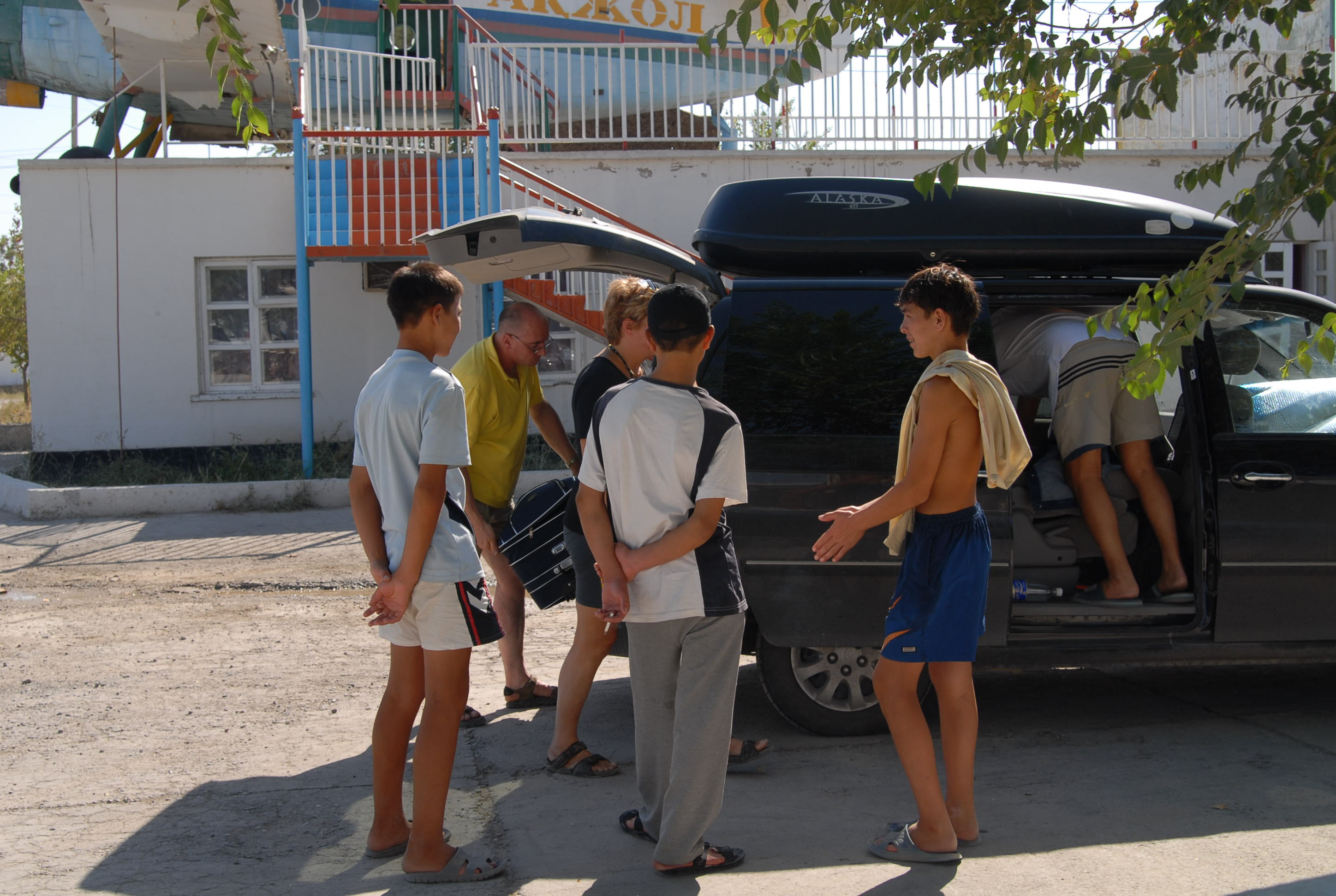 c'è scritto KONAK YJ, in alfabeto russo, vuol dire "albergo" in kazako. Arriva uno che ci dice che lui può darci da dormire e