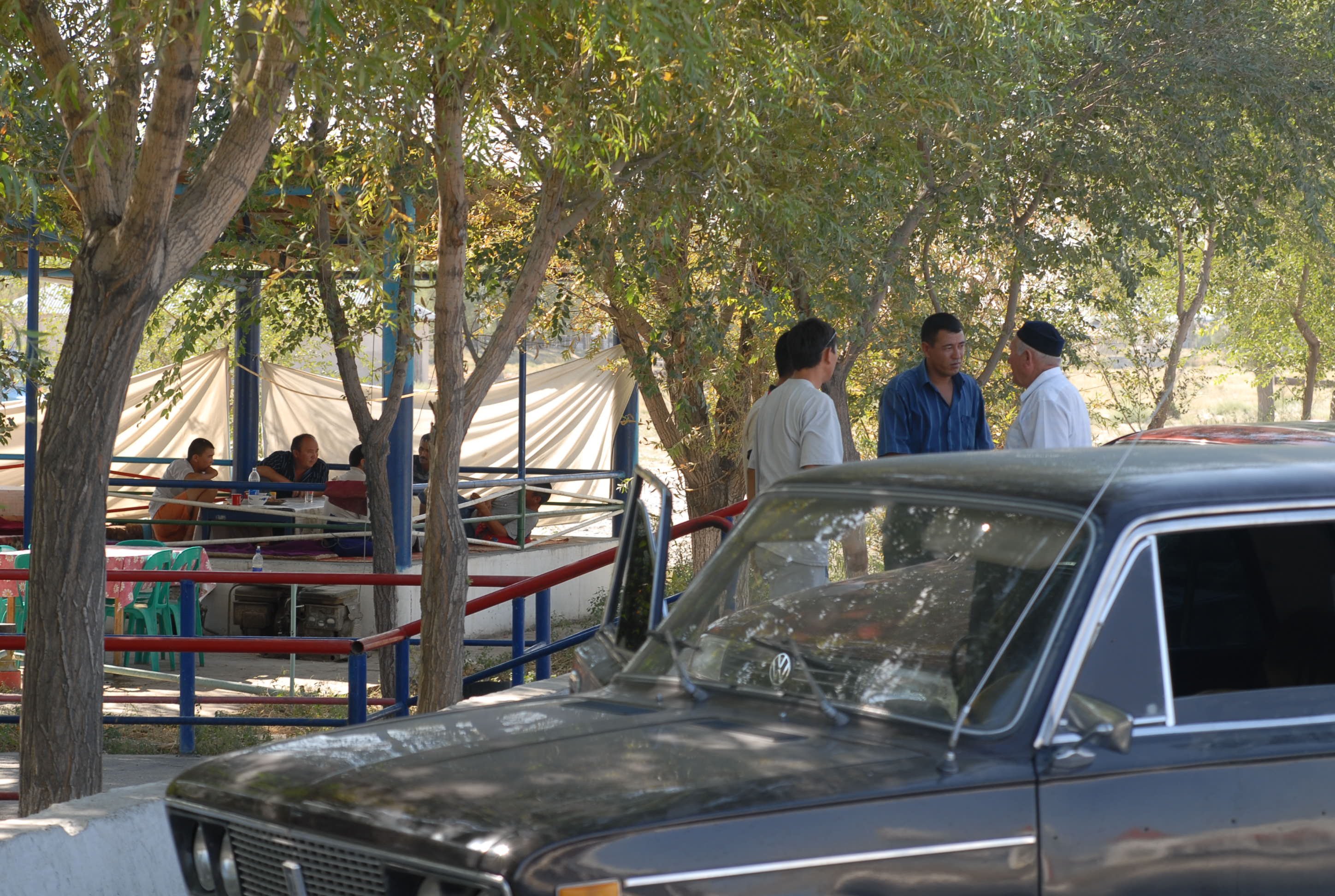 vengono. Chiacchieriamo con i doganieri e ci raccontano che la loro lingua, il kirgizo è imparentato sia con il turkmeno che con l'uzkeko, il