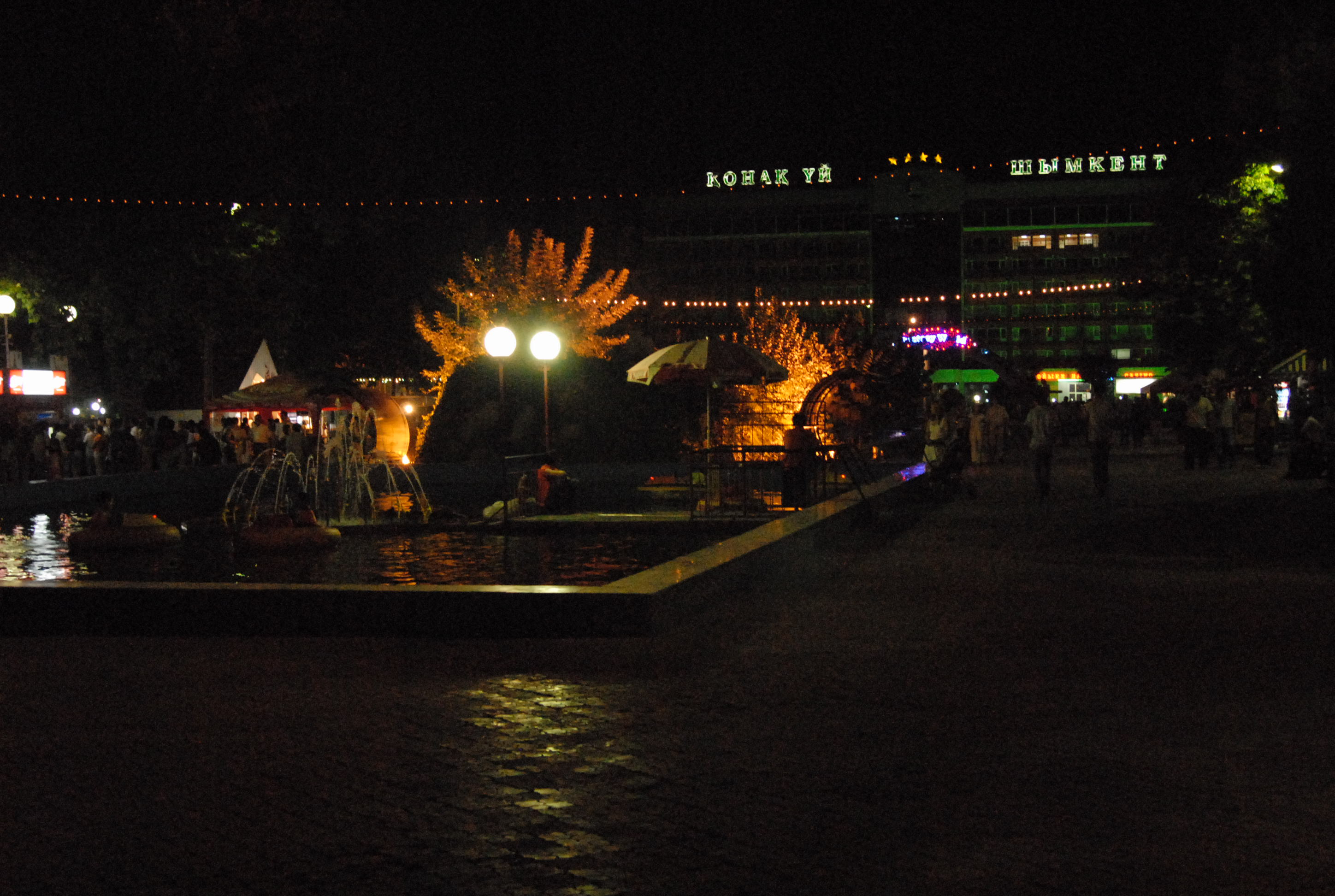 Schimkent all'imbrunire, decidiamo di fermarci, siamo stanchi, andiamo a chiedere nel primo hotel che vediamo, (a 4 stelle) il prezzo della stanza. Come dice il siciliano