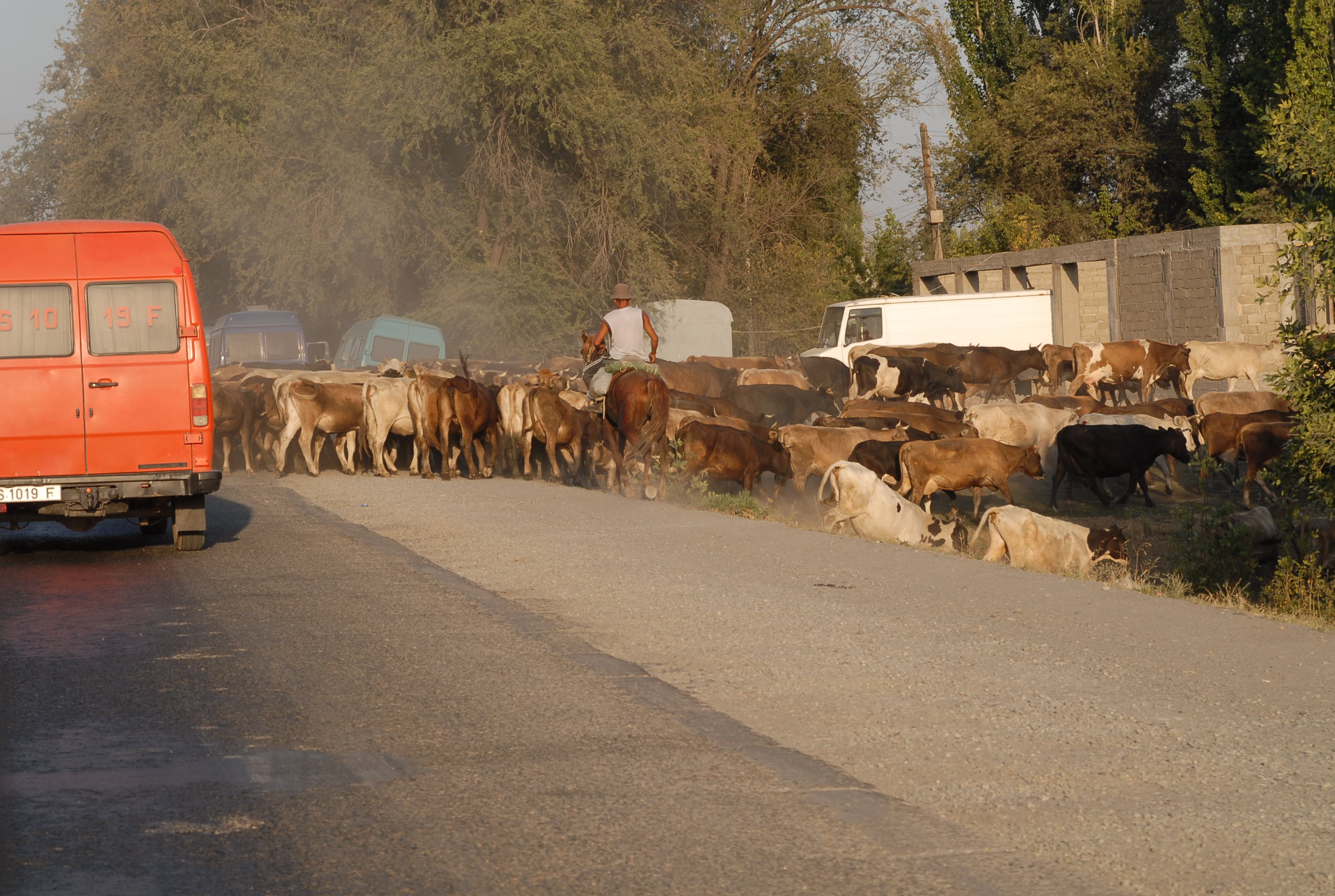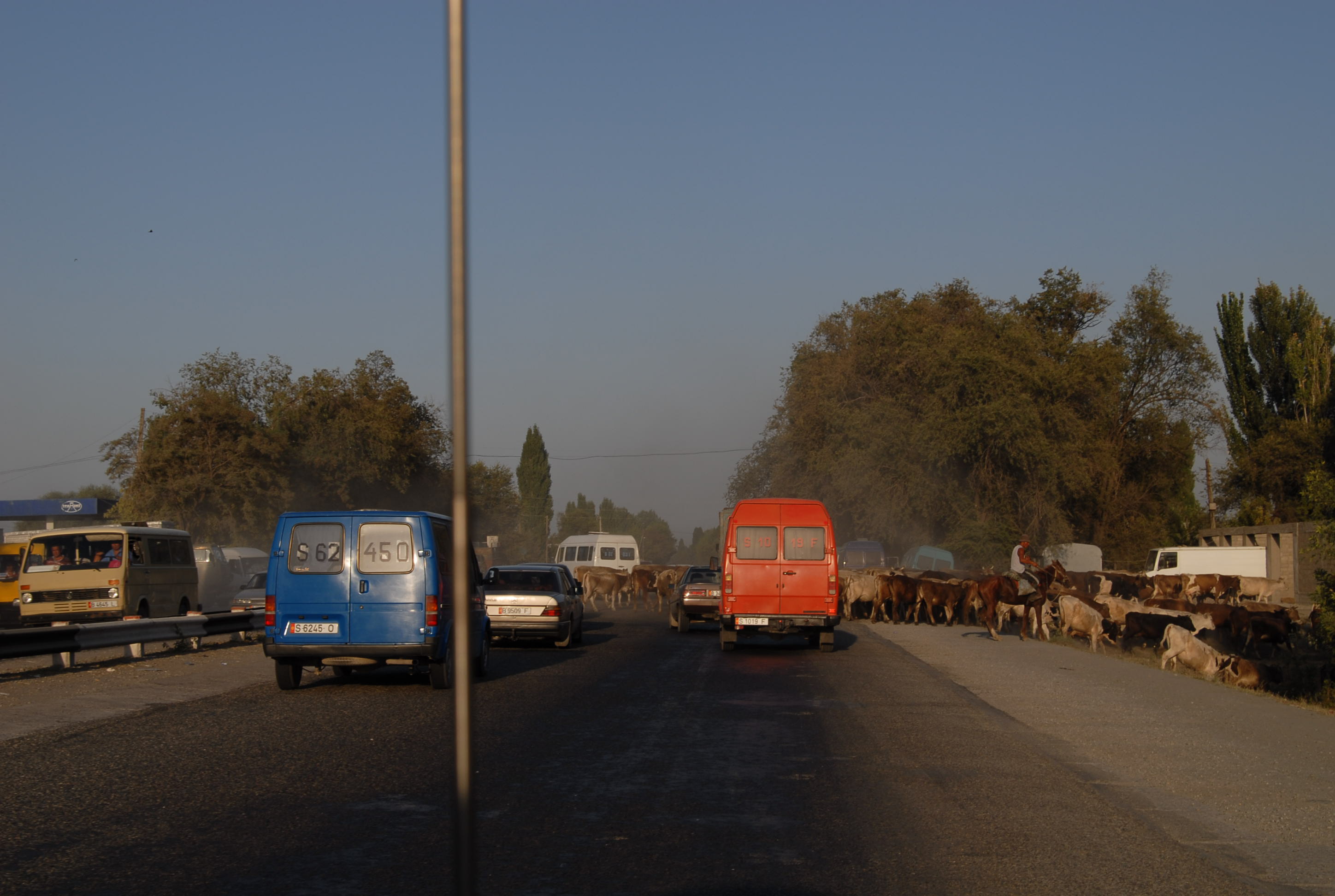 perso l'orologio, torniamo in hotel a cercarlo, ma niente. La strada verso la frontiera Kirgiza è passa in mezzo a molti paesi, è piuttosto trafficata,