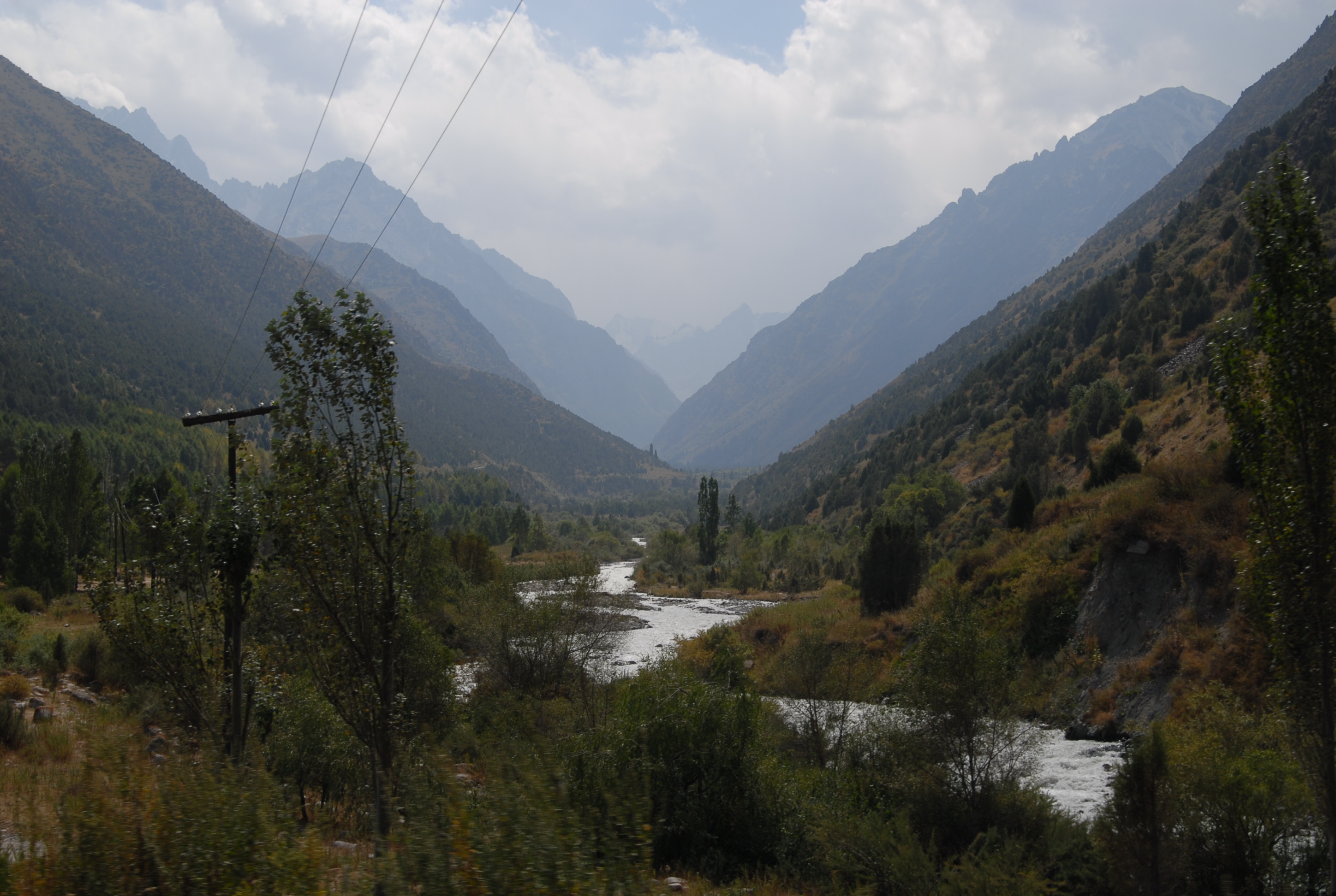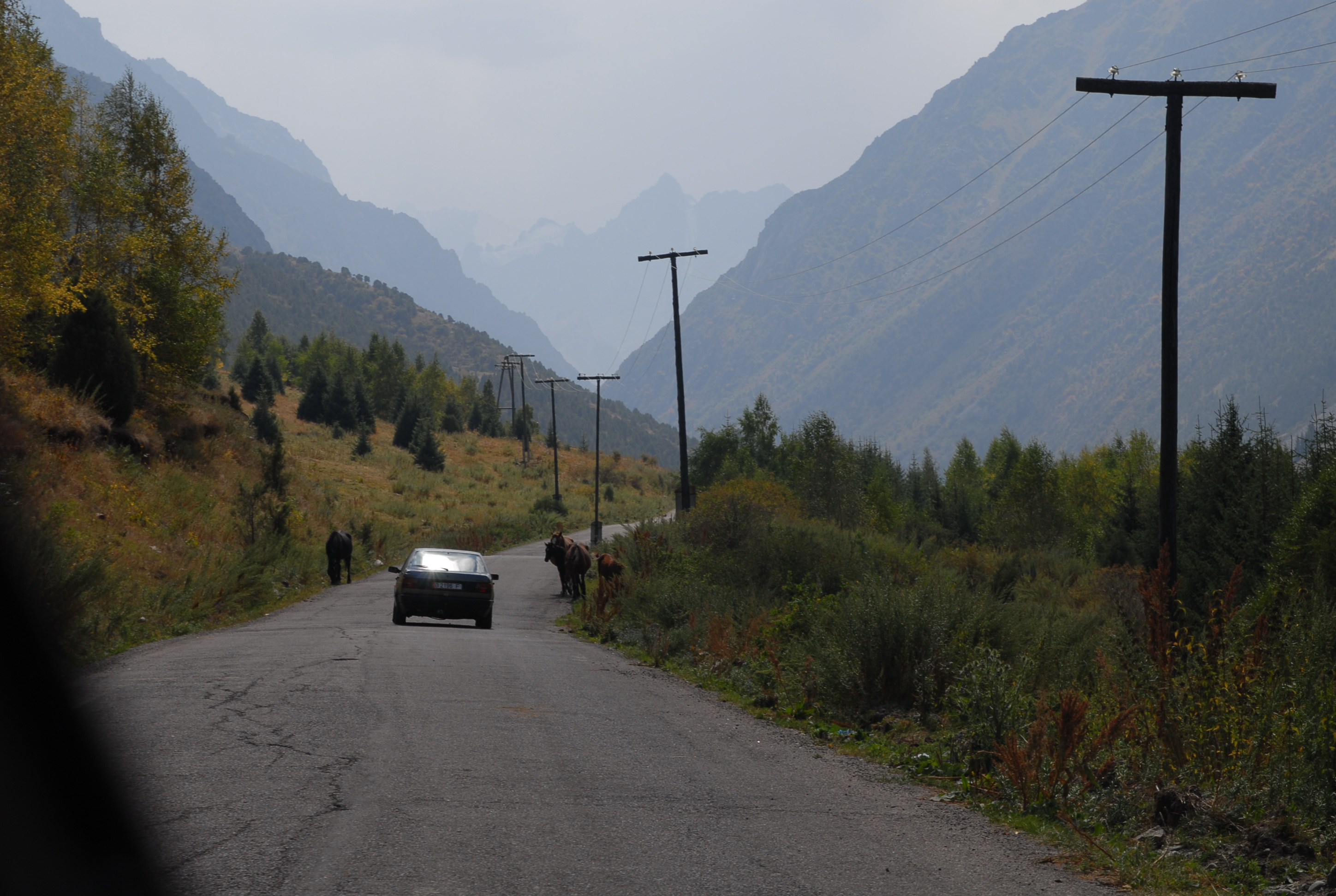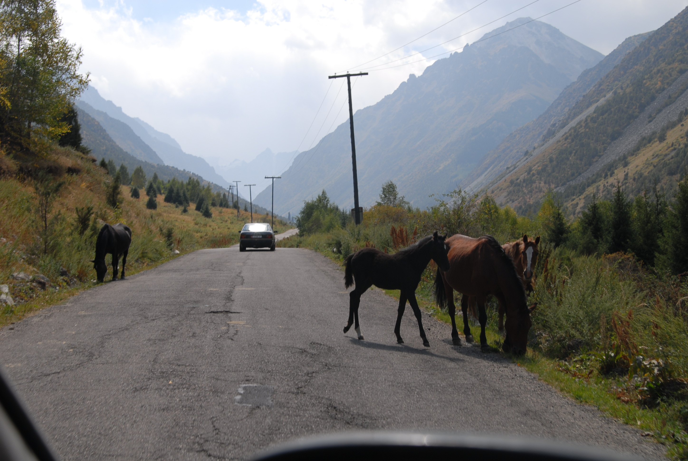 venerdì 25 agosto, Bishkek Abbiamo appuntamento con Natalia che ci accompagna a fare un giro in montagna, Brave-heart è molto combattuto, ha appuntamento alle 2 con la ragazza di ieri, e non sa se venire con noi. Ma certamente non torneremo per le due, quindi se ne va a spasso per Bishkek nell'attesa. Antonino invece si aggrega perché non è riuscito a trovare al telefono la sua ragazza e quindi ogni mezzòra ci fa telefonare. | |