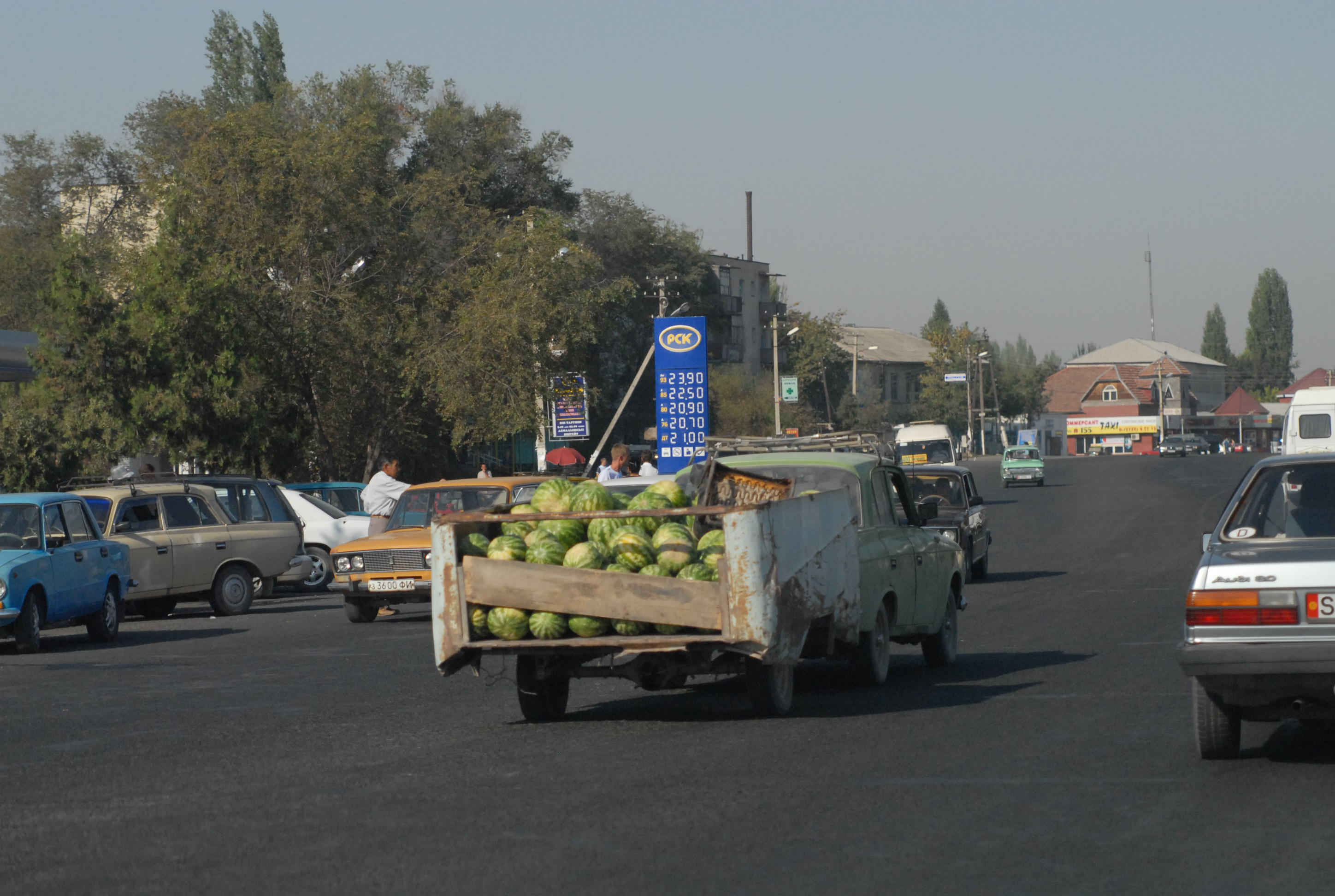 signora che ne direbbe di un'insalatina?io mi arrabbio sempre di più noi non abbiamo nemmeno fatto colazione, lei per farla ci ha fatto partire alle 9 anziché alle sette come dicevo io, alla frontiera siete spariti a comprare che non vi trovavamo più e ora vorrebbe ancora fermarsi? Ok, decidiamo di fermarci a Shimkent che conosciamo già sia l'hotel che dove andare a mangiare... Ma poi io non parto più di questa sera, non voglio rischiare di arrivare a Tashkent e non trovare da dormireNo, a Shimkent lui non si vuole fermare, non soprattutto in quell'hotel. Credo che si sia un pò compromesso con la ragazza della reception...