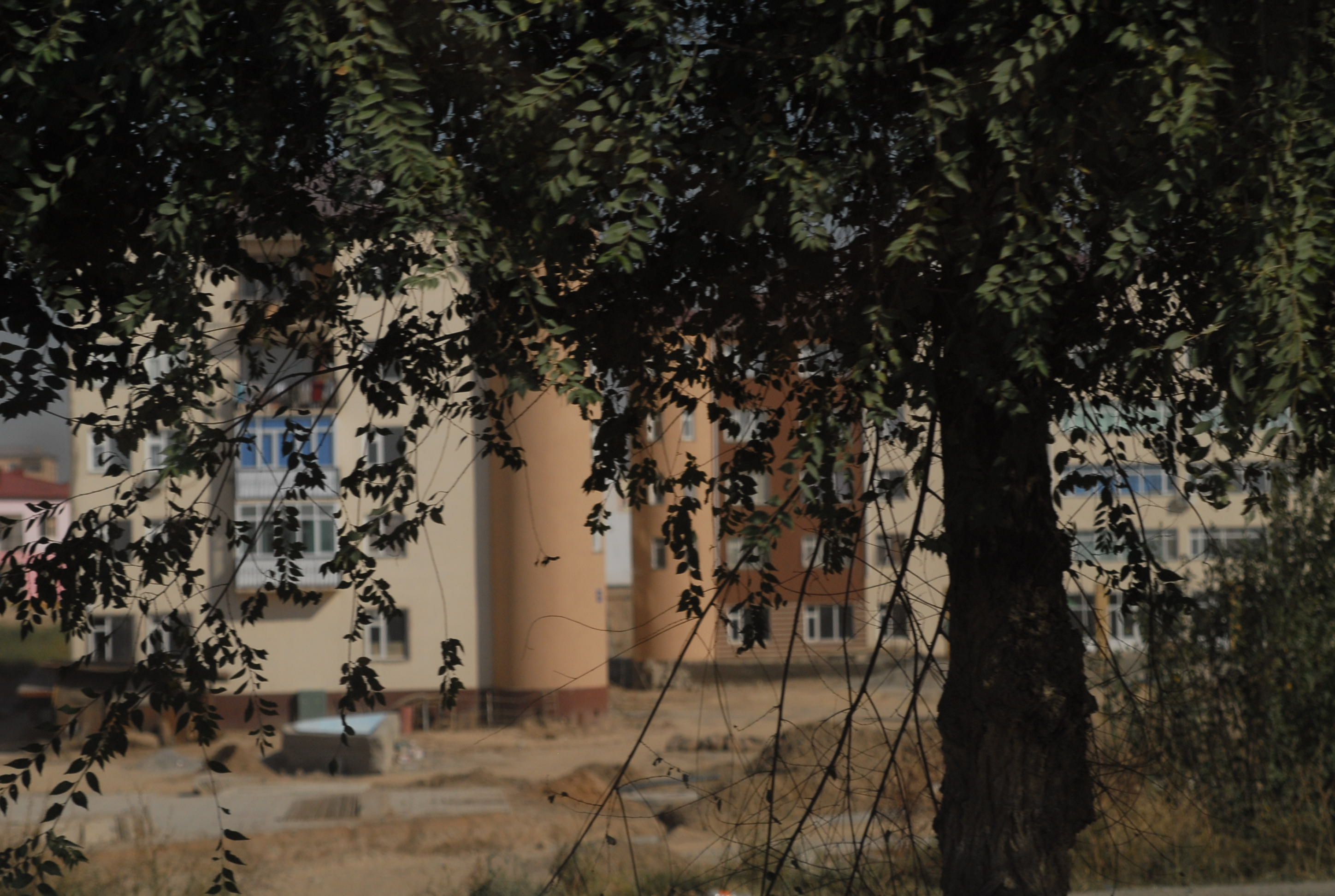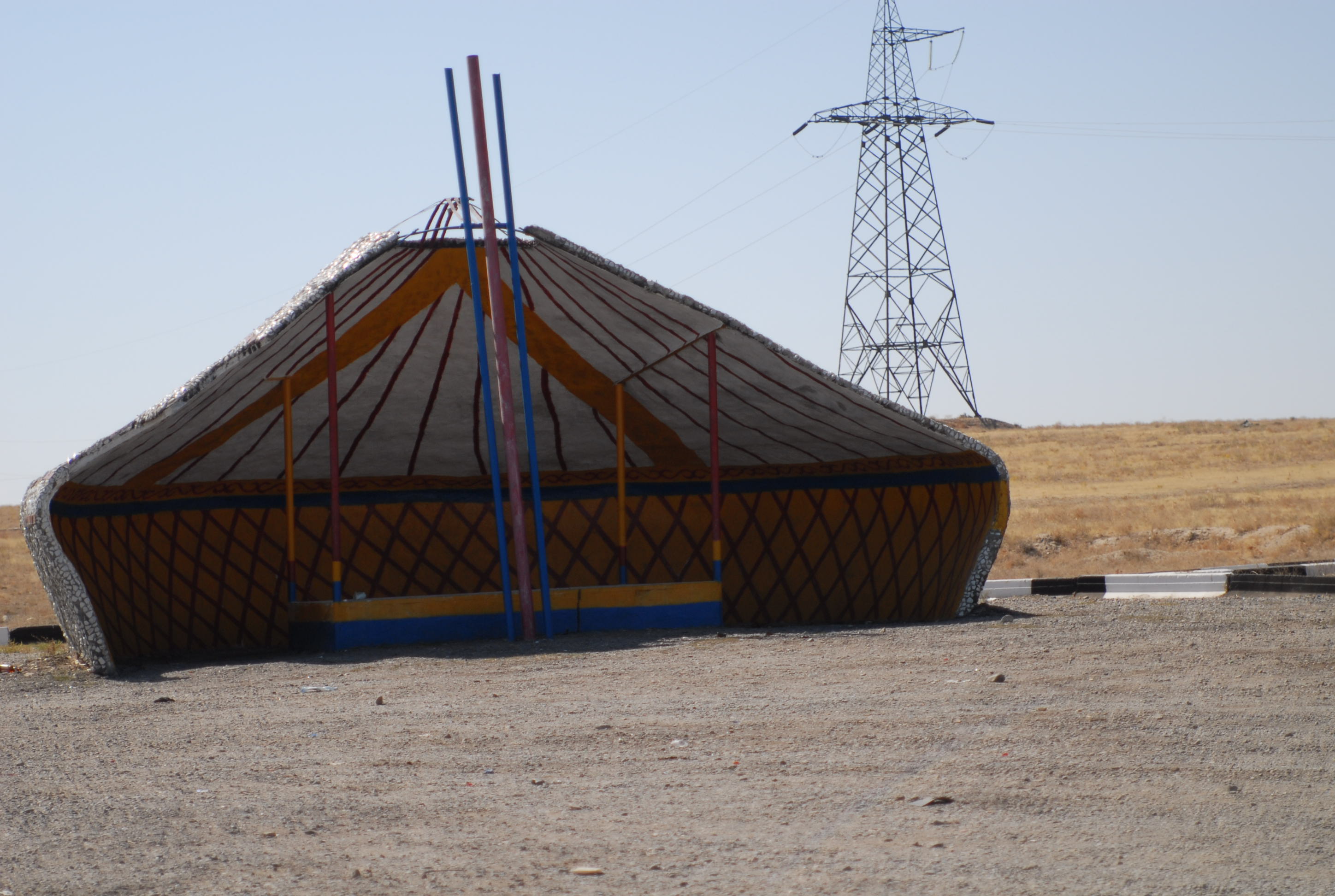 | Vediamo il primo Jurta da vicino (ne abbiamo visto uno in centro città, ma passandoci davanti con la macchina). Dentro sembra quello che io mi immagino sia una tenda indiana, come si vedono nei film dei cowboy. Questo è adibito a bar/ristoro, è molto grande |