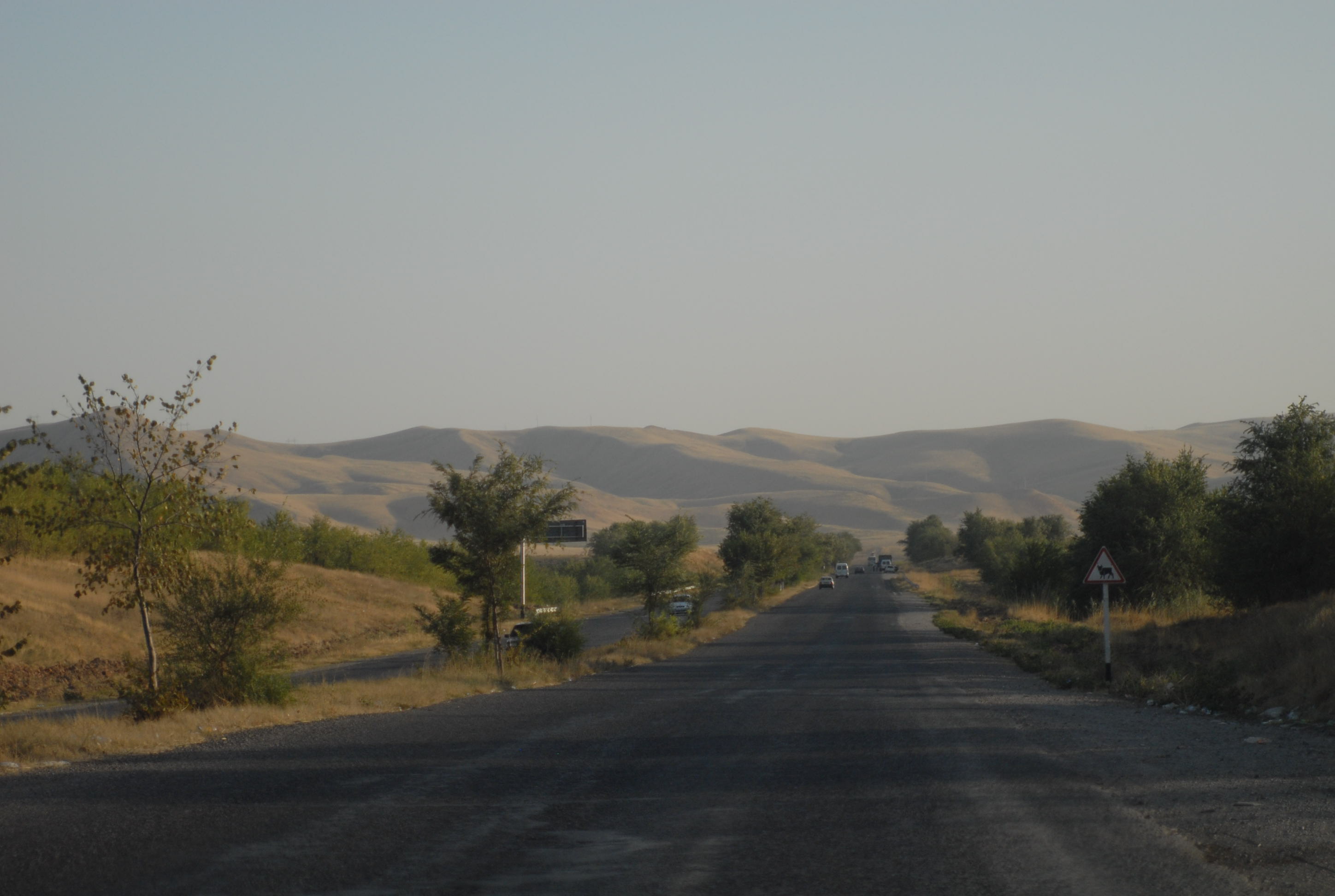 | Il pranzo mi calma, risaliamo quindi in macchina e ci spariamo verso Tashkent, sono solo 120 kilometri magari ce la facciamo prima del buio | |