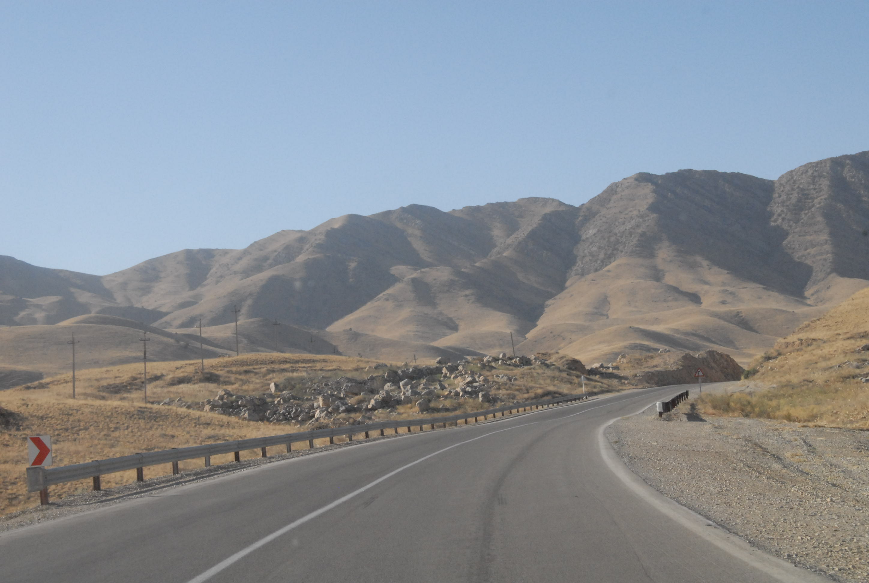 Sono molto emozionata e lo scenario è davvero inconsueto e sconcertante. La strada, bella, pulitissima e deserta si snoda tra montagne spoglie e scoscese. Per tutto il lungo percorso