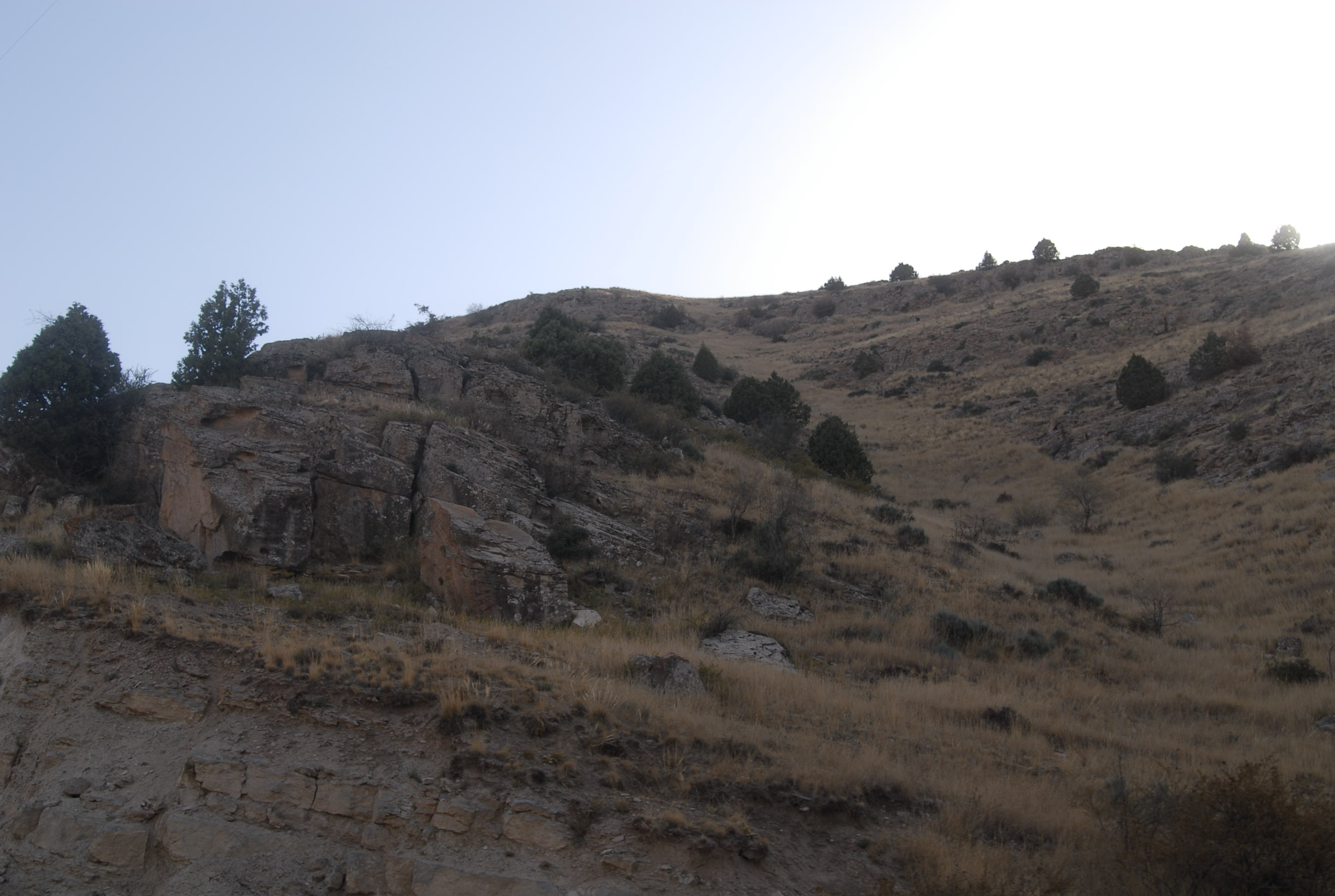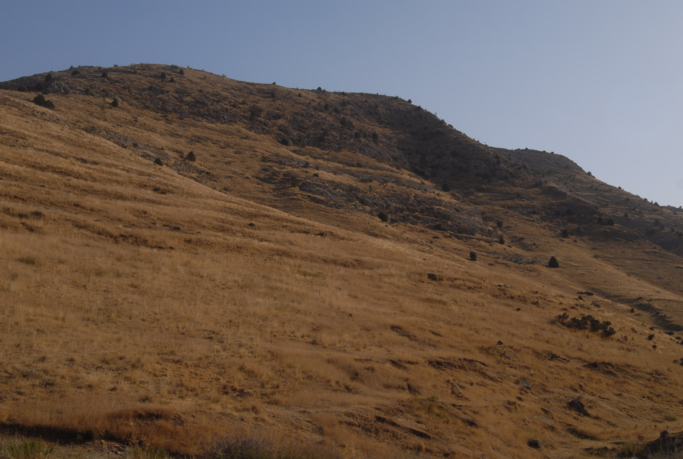 c'è divieto di sorpasso e quindi quando raggiungiamo un camion davanti a noi, rallentiamo l'andatura per un bel pezzo. Si sale parecchio. Il cielo è