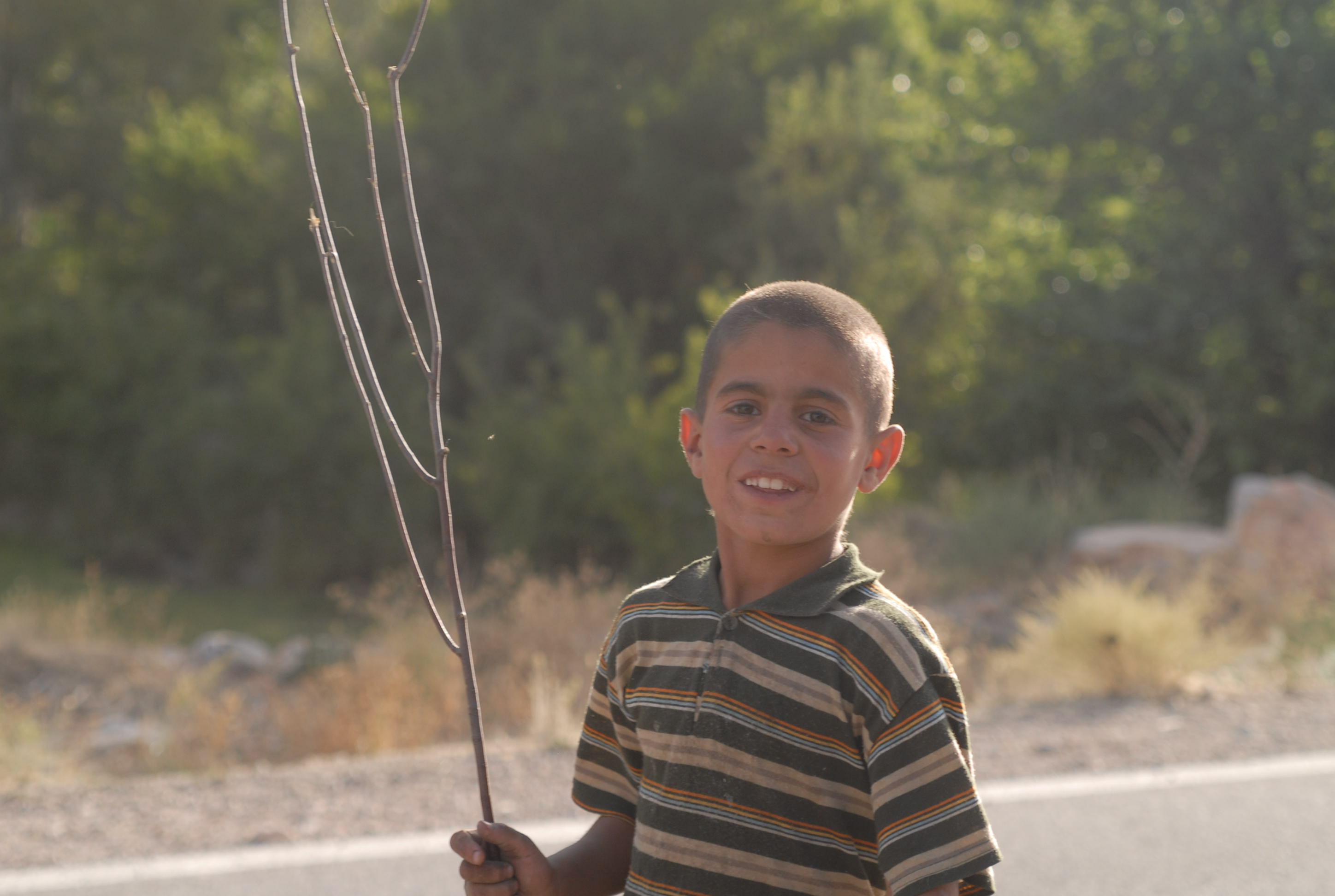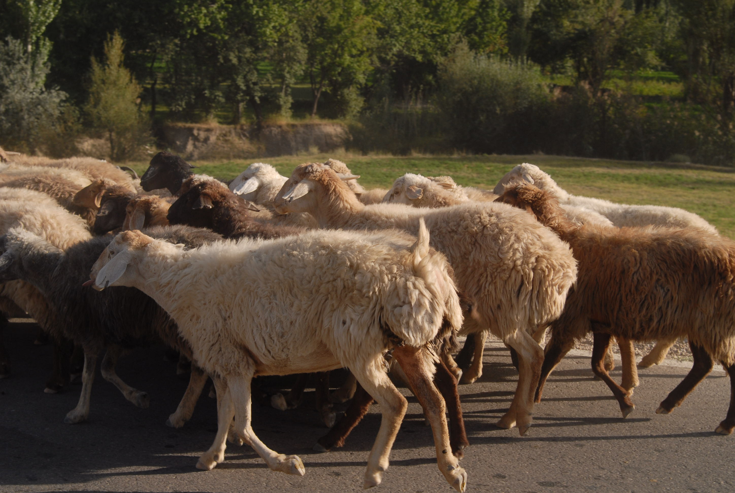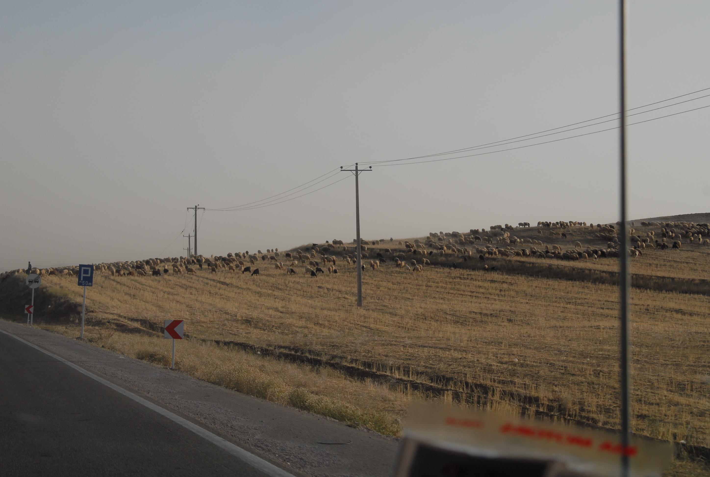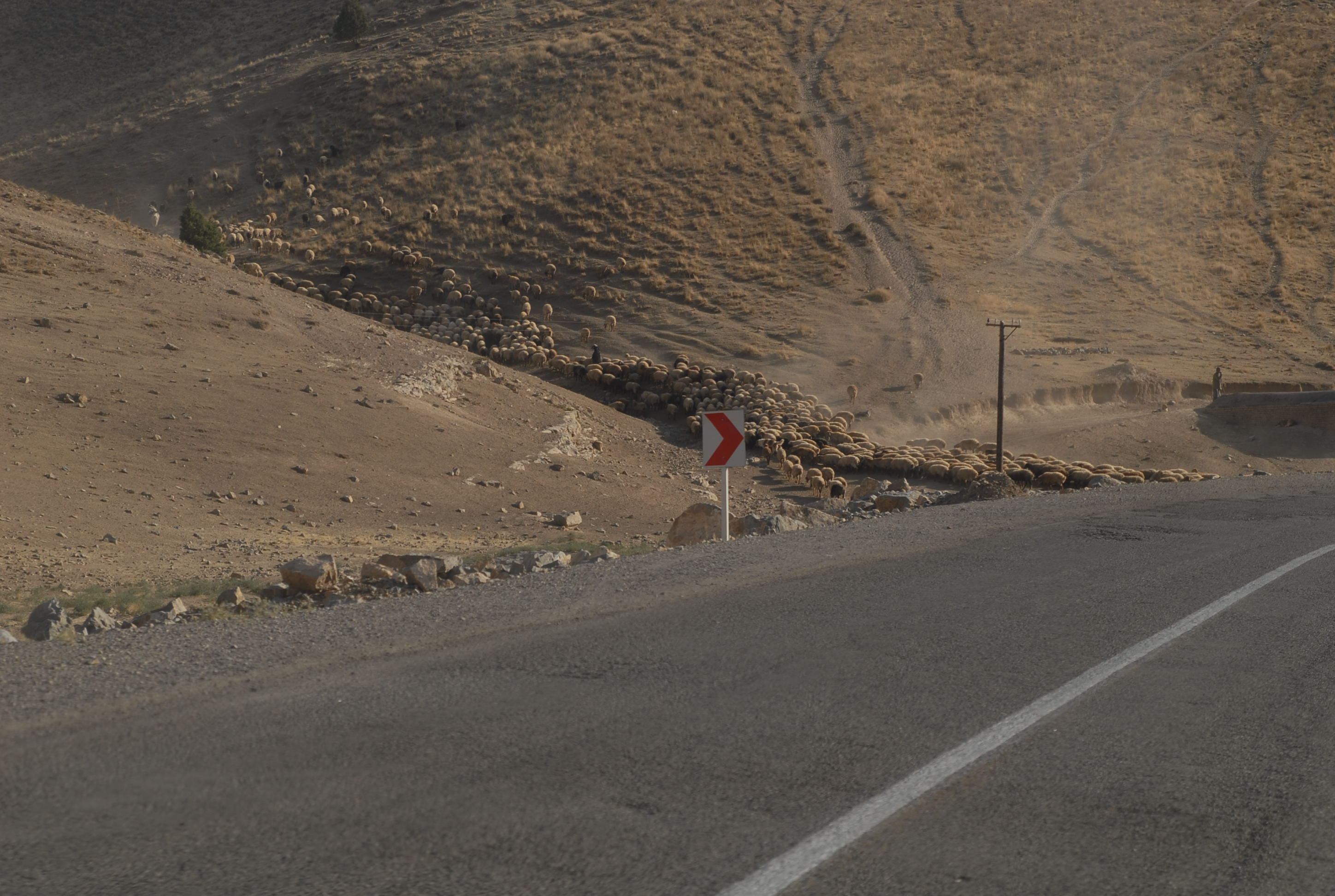 C'è un gregge che attraversa la strada.. lo accompagna un bambino. Non avrà più di 6 anni!