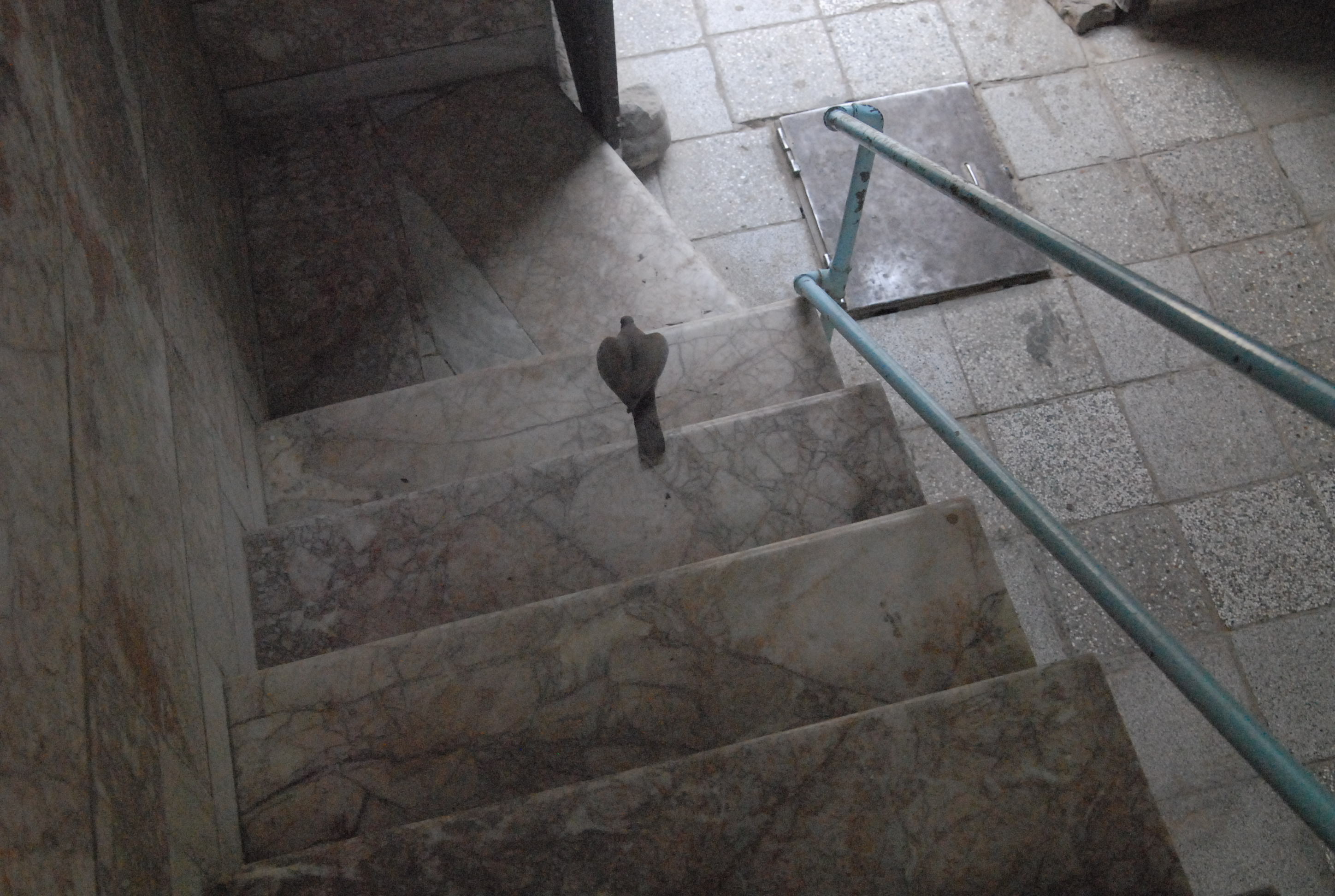 Sulle scale c'è un colombo