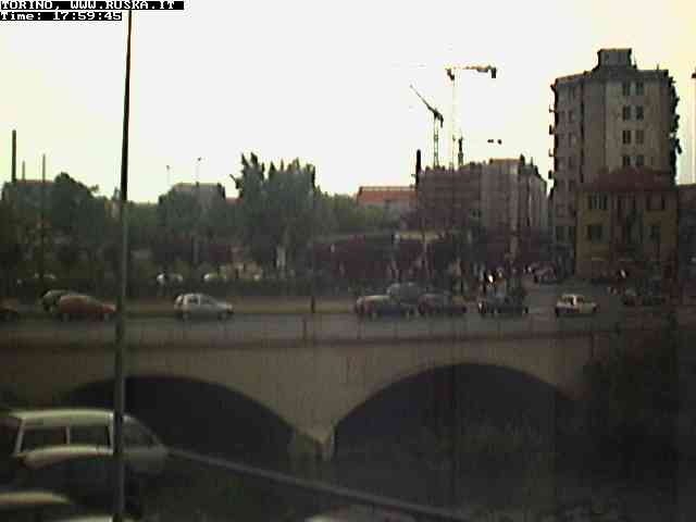 ogni giorno le foto dalla webcam sopra il nostro ufficio: il ponte sul fiume Dora a Torino, via Bellotti Bon, corso Svizzera e in lontananza, quando non c'è foschia: le Alpi